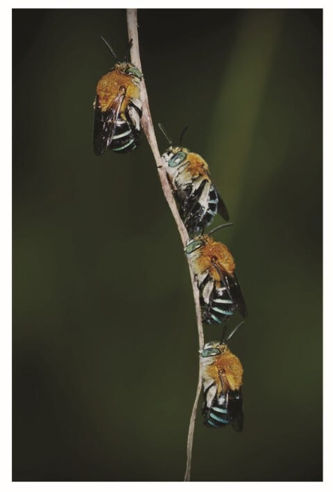 02. アオスジフトハナバチの集団越夜(Aセット)